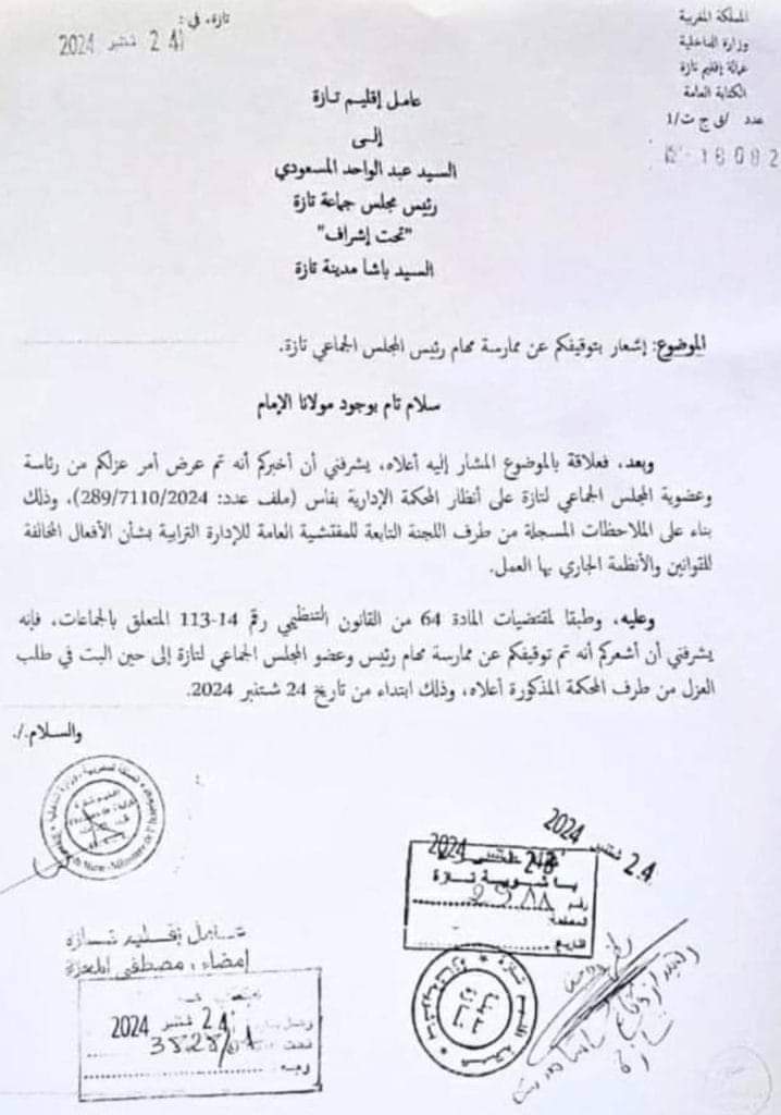 توقيف القيادي “البامي” المسعودي من رئاسة جماعة تازة من طرف وزارة الداخلية