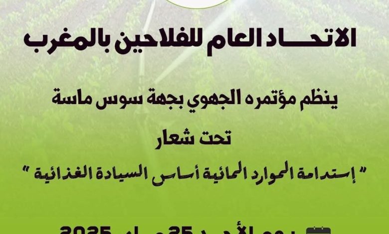 أكادير تحتضن المؤتمر الجهوي للفلاحين بسوس ماسة تحت شعار: “استدامة الموارد المائية أساس السيادة الغذائية”