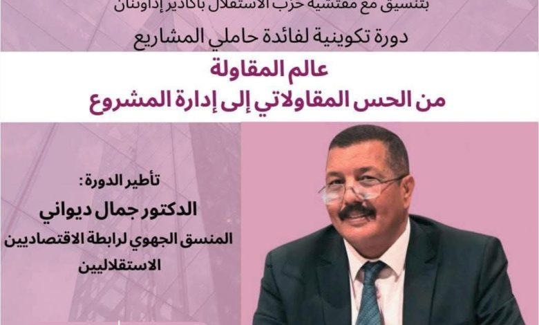 وستنعقد هذه الدورة التكوينية تحت إشراف الدكتور جمال ديواني، البرلماني عن حزب الاستقلال، المعروف بانخراطه الفاعل في مبادرات دعم الشباب والمقاولين الجدد بجهة سوس ماسة.