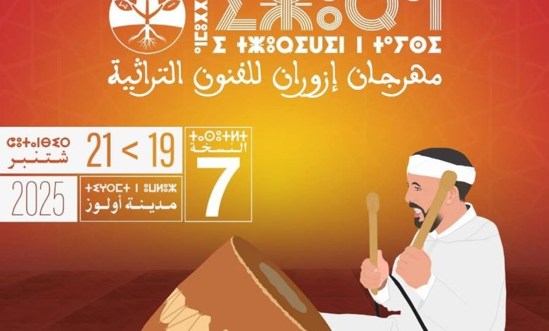 تستعد جمعية اسنفلول للثقافة والبيئة والتضامن، بشراكة مع المعهد الملكي للثقافة الأمازيغية، وبدعم من مؤسسة دار الصانع ووزارة الشباب والثقافة والتواصل – قطاع الثقافة، ومجلس جهة سوس ماسة ومركز سوس ماسة للتنمية الثقافية، إلى جانب عدد من الشركاء المؤسساتيين والخواص، لتنظيم الدورة السابعة من مهرجان إزوران للفنون التراثية، وذلك خلال الفترة الممتدة من 19 إلى 21 شتنبر 2025 بمدينة أولوز، إقليم تارودانت.