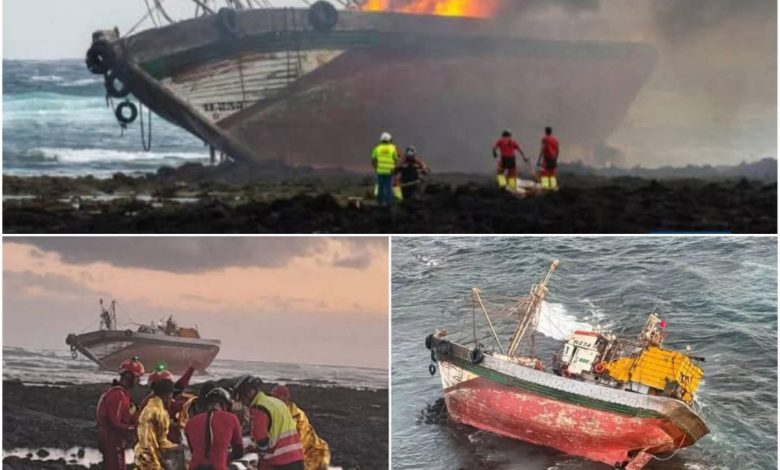 مركب الصيد “الحسين” ينتهي محترقًا بسواحل الكناري بعد اختفائه من ميناء أكادير