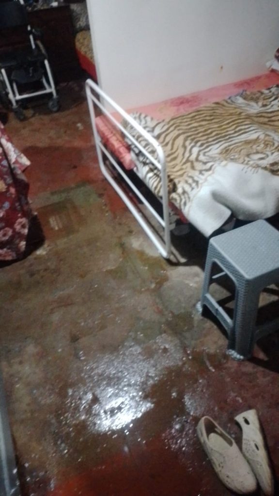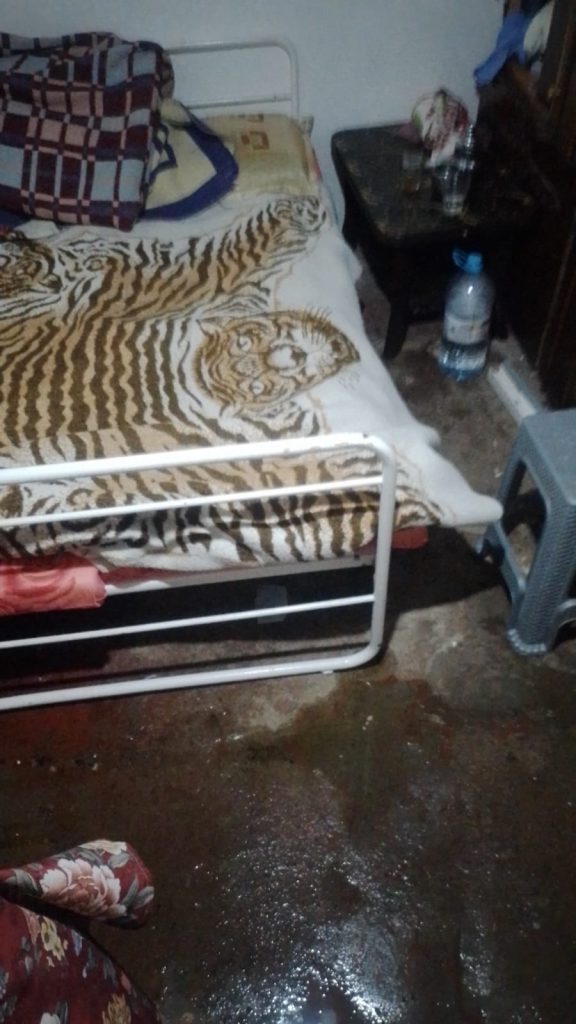 المنزل، وهو عبارة عن مسكن صفيحي مهترئ، غمرته مياه الأمطار من كل الجهات، فصار أشبه بمستنقع لا يليق بكرامة الإنسان. الأسرة تعيش وسط الرطوبة والماء، دون قدرة على التغيير أو حتى الترميم، في غياب تام لأي تدخل اجتماعي أو إنساني.