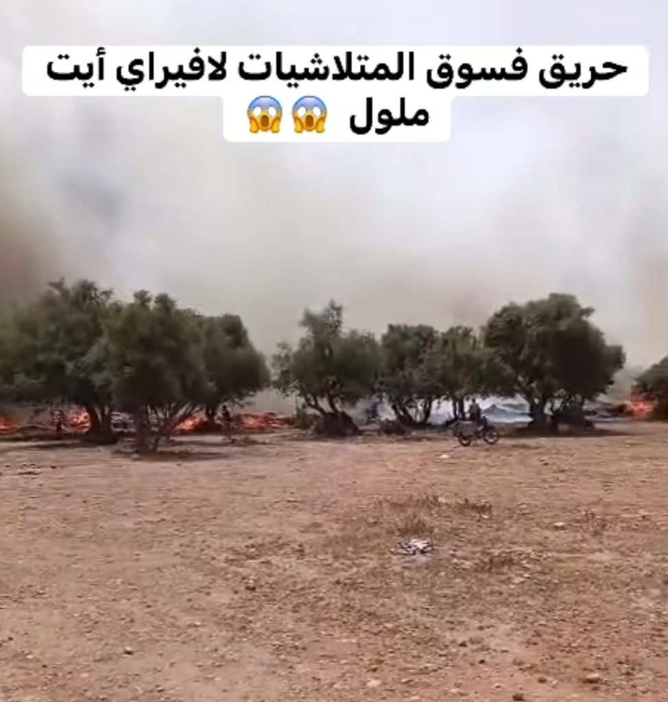 حريق هائل يلتهم سوق المتلاشيات في أيت ملول خسائر مادية فادحة دون خسائر بشرية