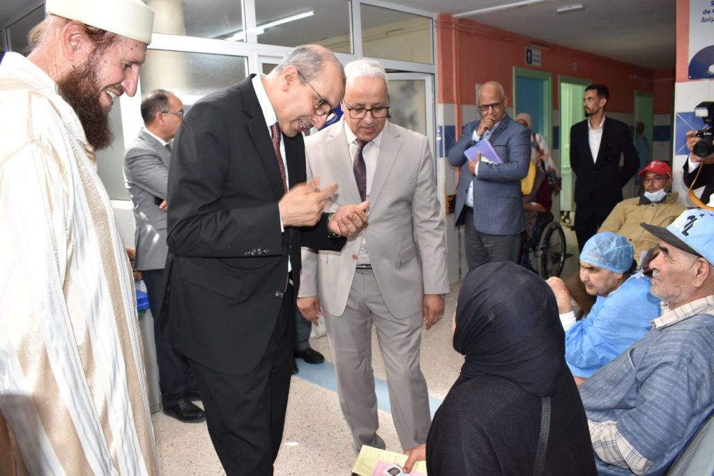 حل عامل اقليم اشتوكة ايت باها السيد محمد سالم الصبتي صباح اليوم الثلاثاء بالمستشفى الاقليمي المختار السوسي للوقوف على مجريات الحملة الطبية الجراحية المخصصة لعلاج المياه البيضاء (الجلالة) والمستمرة إلى غاية 30 من هذا الشهر.